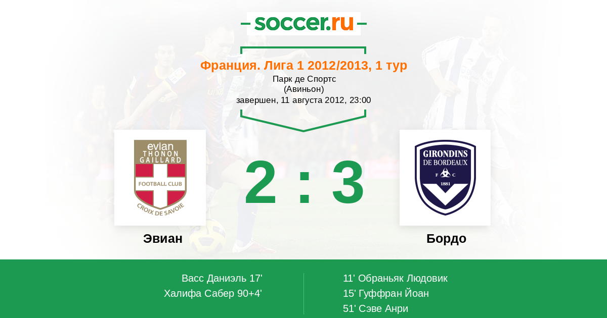 Протокол матча Эвиан против Бордо