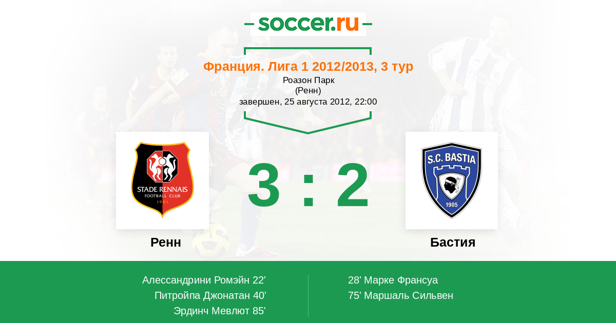 Протокол матча Ренн против Бастия