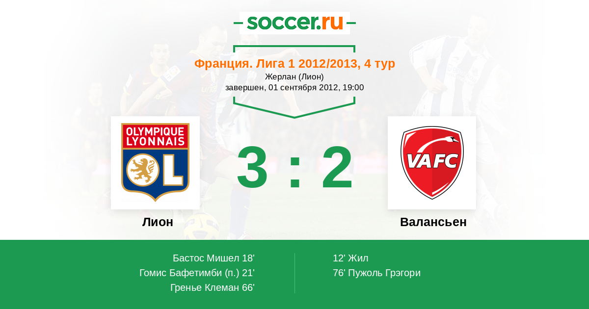 Протокол матча Лион против Валансьен