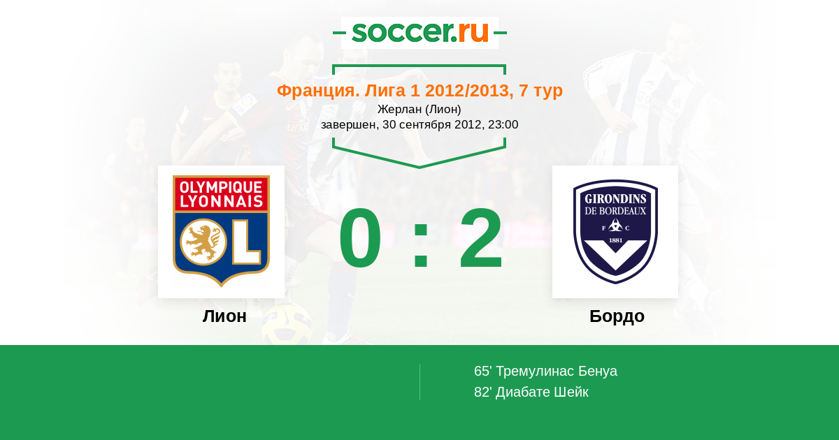 Протокол матча Лион против Бордо