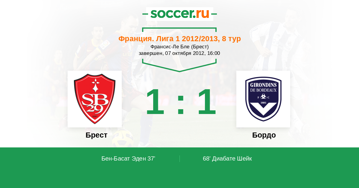Протокол матча Брест против Бордо