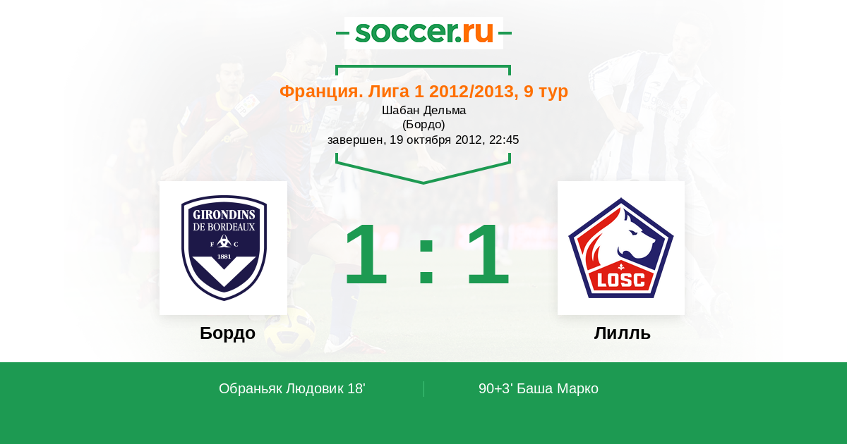 Протокол матча Бордо против Лилль