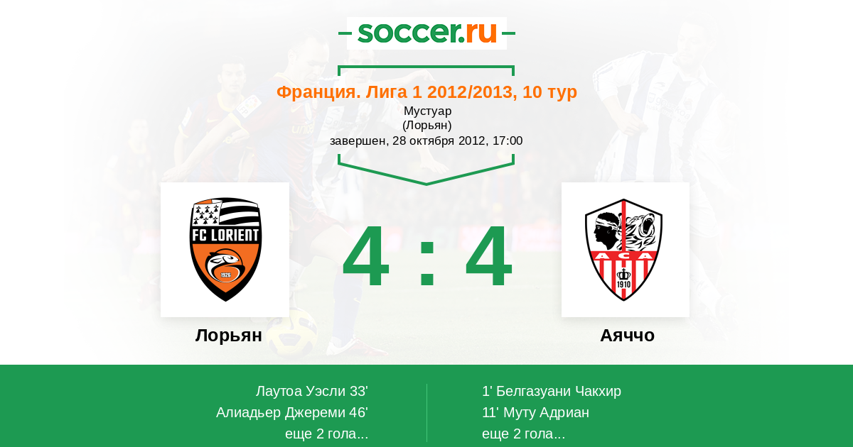 Протокол матча Лорьян против Аяччо