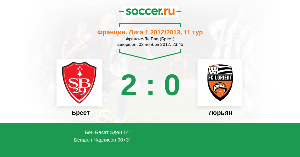 Протокол матча Брест против Лорьян