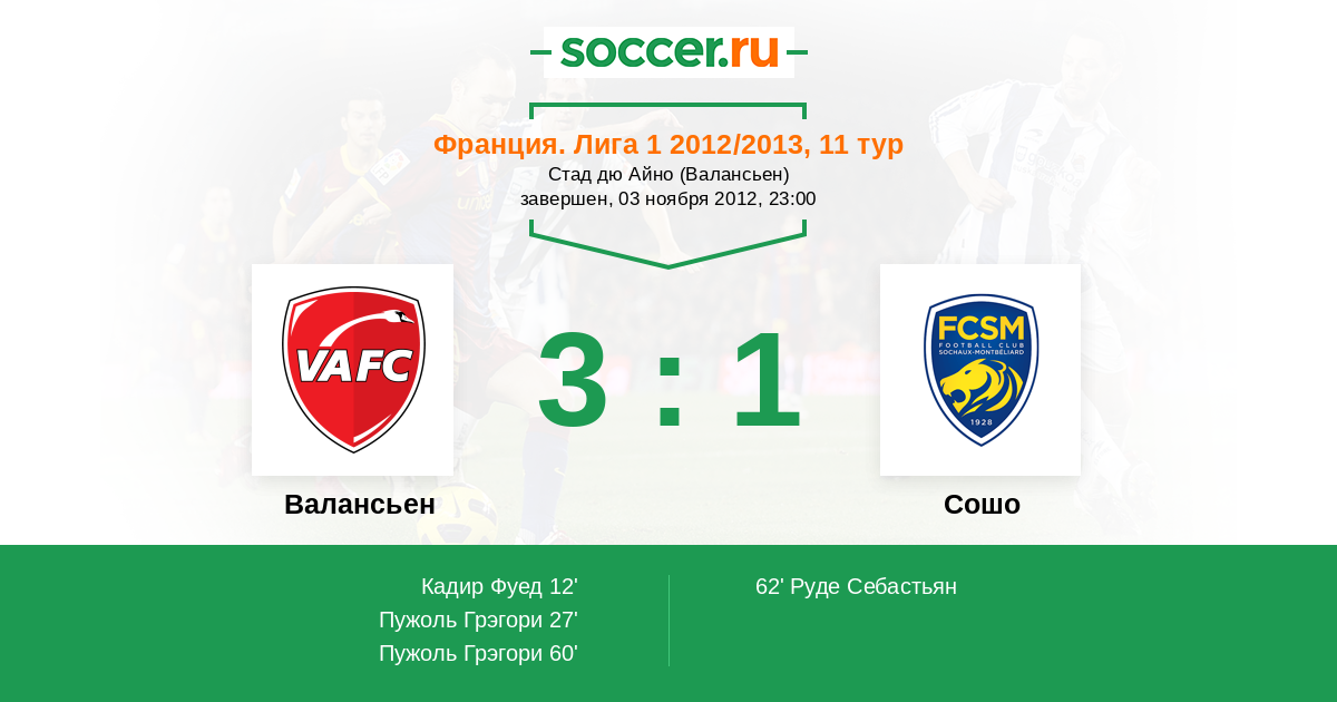 Протокол матча Валансьен против Сошо