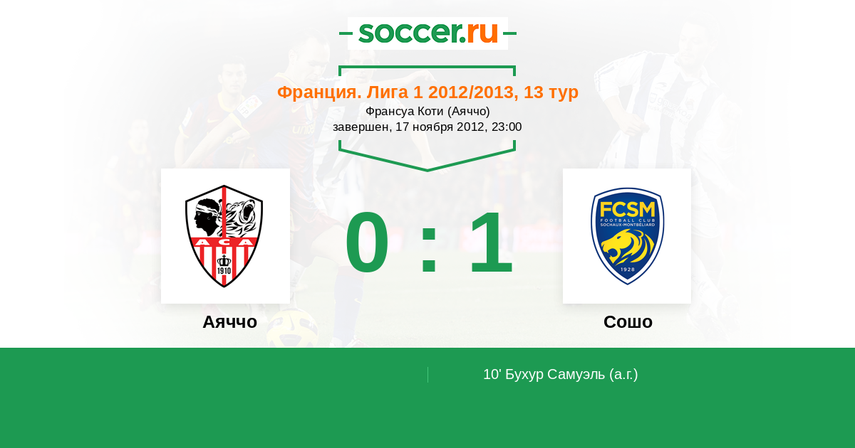 Протокол матча Аяччо против Сошо