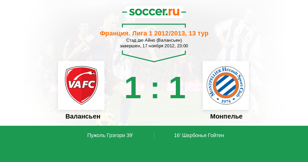 Протокол матча Валансьен против Монпелье