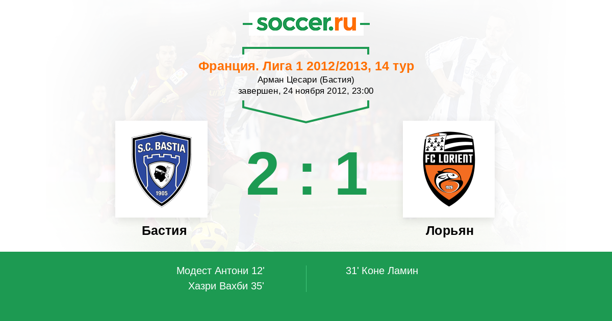 Протокол матча Бастия против Лорьян