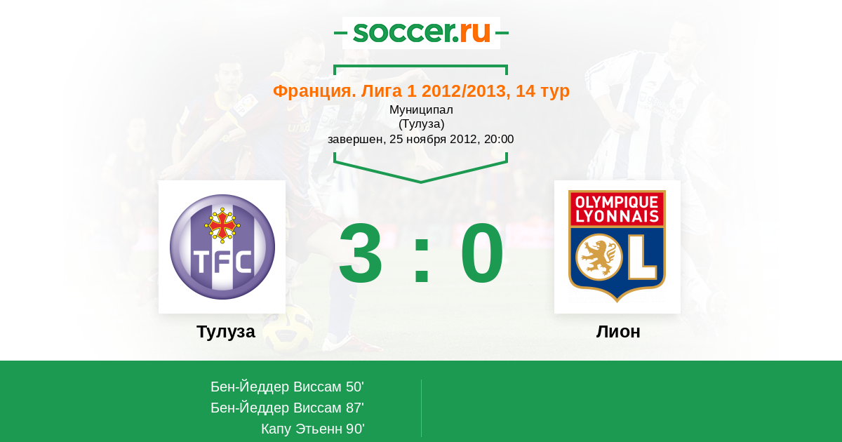 Протокол матча Тулуза против Лион