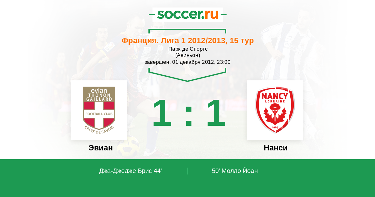 Протокол матча Эвиан против Нанси