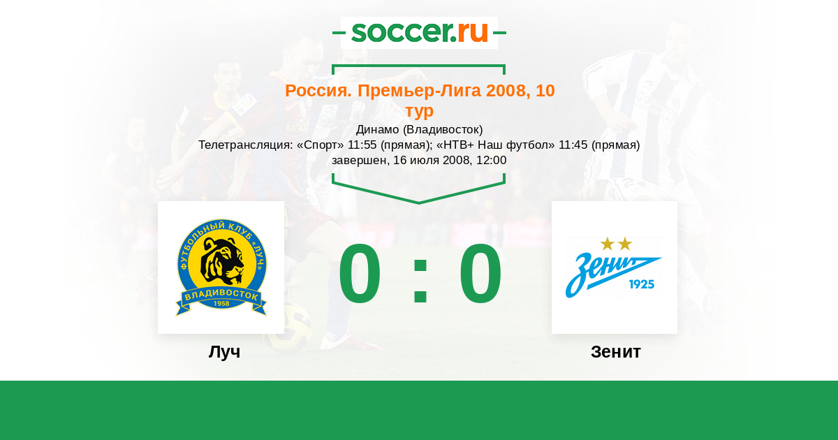 История матча Луч против Зенит