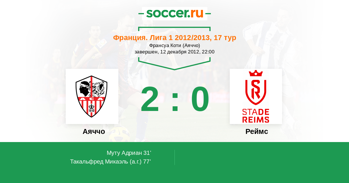 Протокол матча Аяччо против Реймс