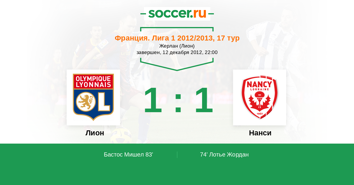Протокол матча Лион против Нанси