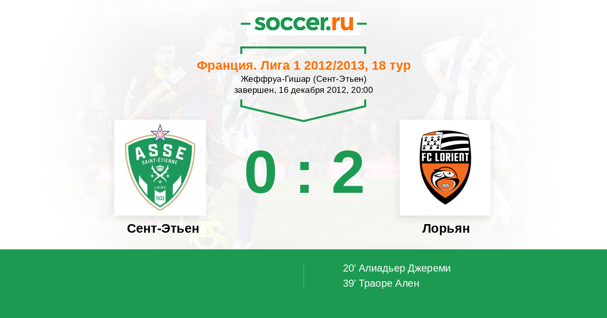 Протокол матча Сент-Этьен против Лорьян