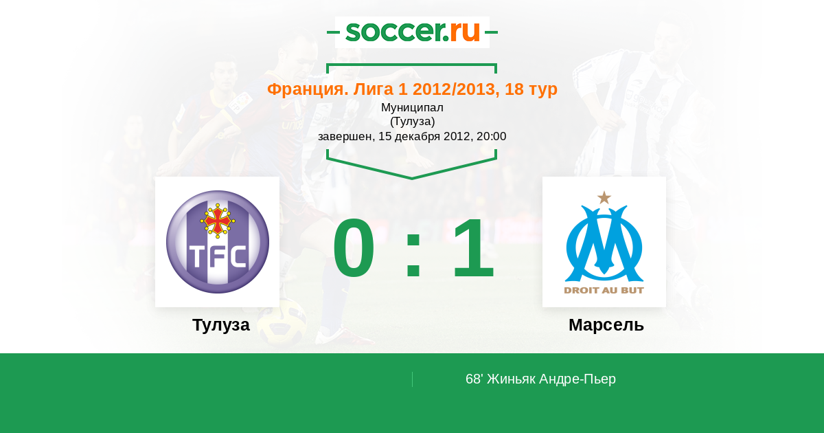 Протокол матча Тулуза против Марсель