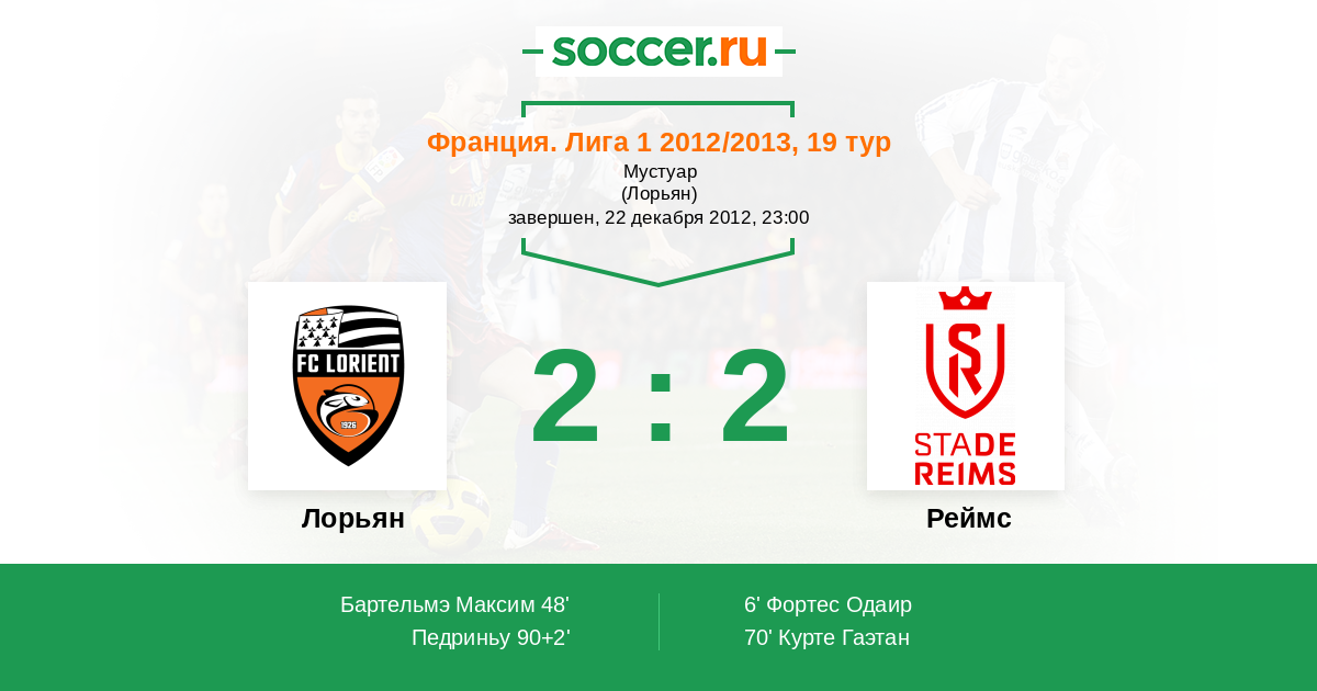 Протокол матча Лорьян против Реймс