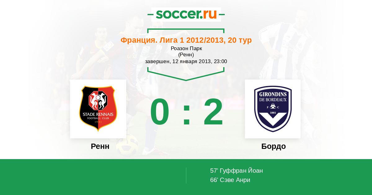 57’ 0:1 Гуффран Йоан