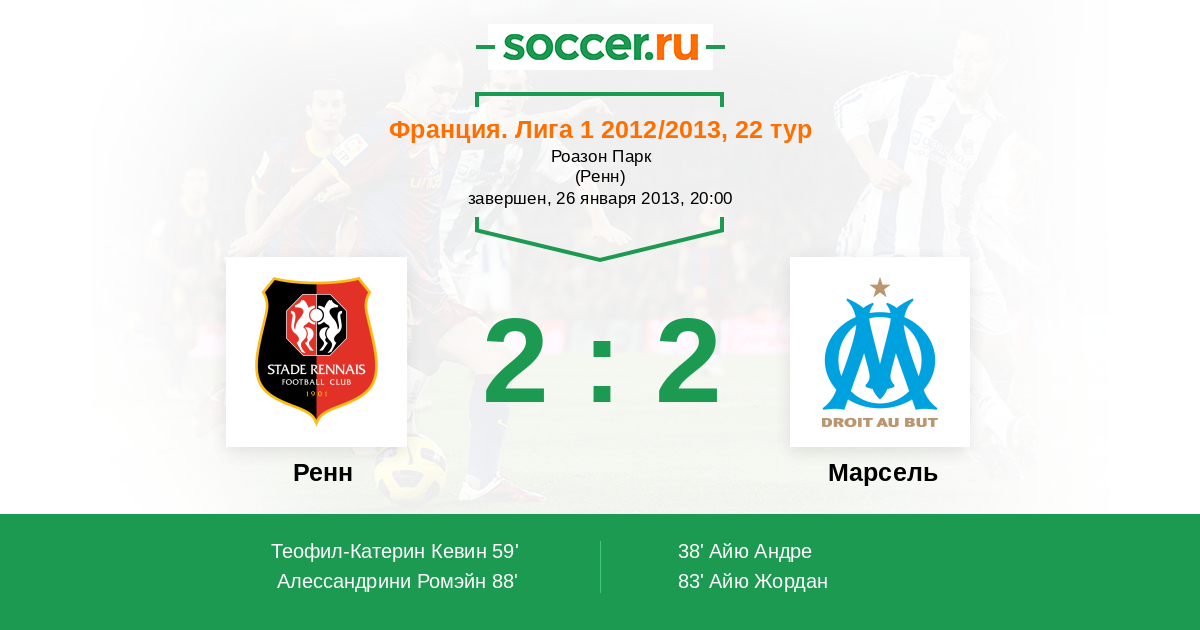 59' (1:1) Теофил-Катерин Кевин (2) (Алессандрини Ромэйн (19))