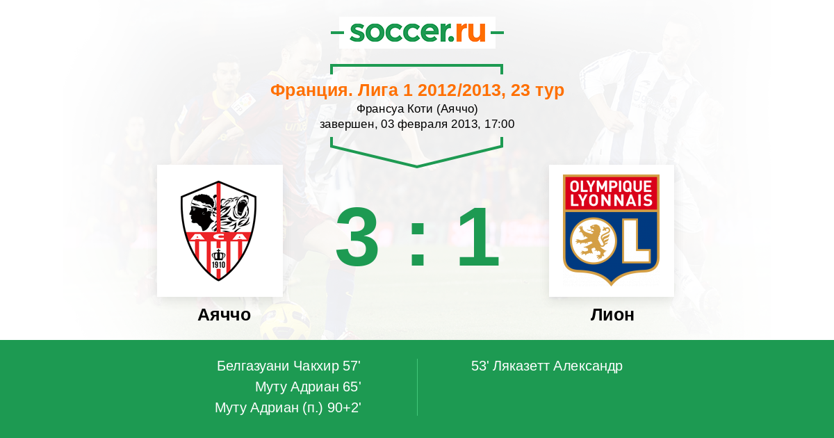 Протокол матча Аяччо против Лион