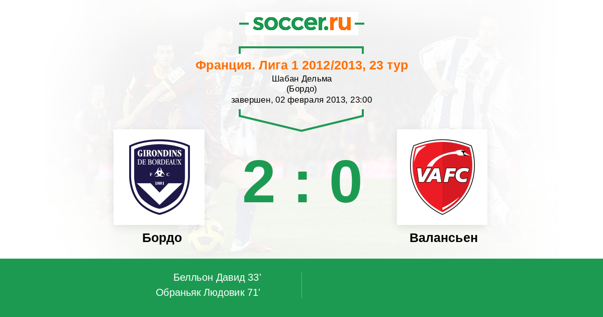 Протокол матча Бордо против Валансьен