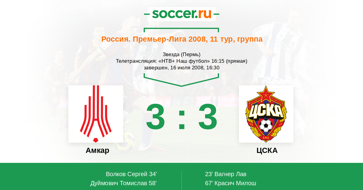 Протокол матча Амкар против ЦСКА