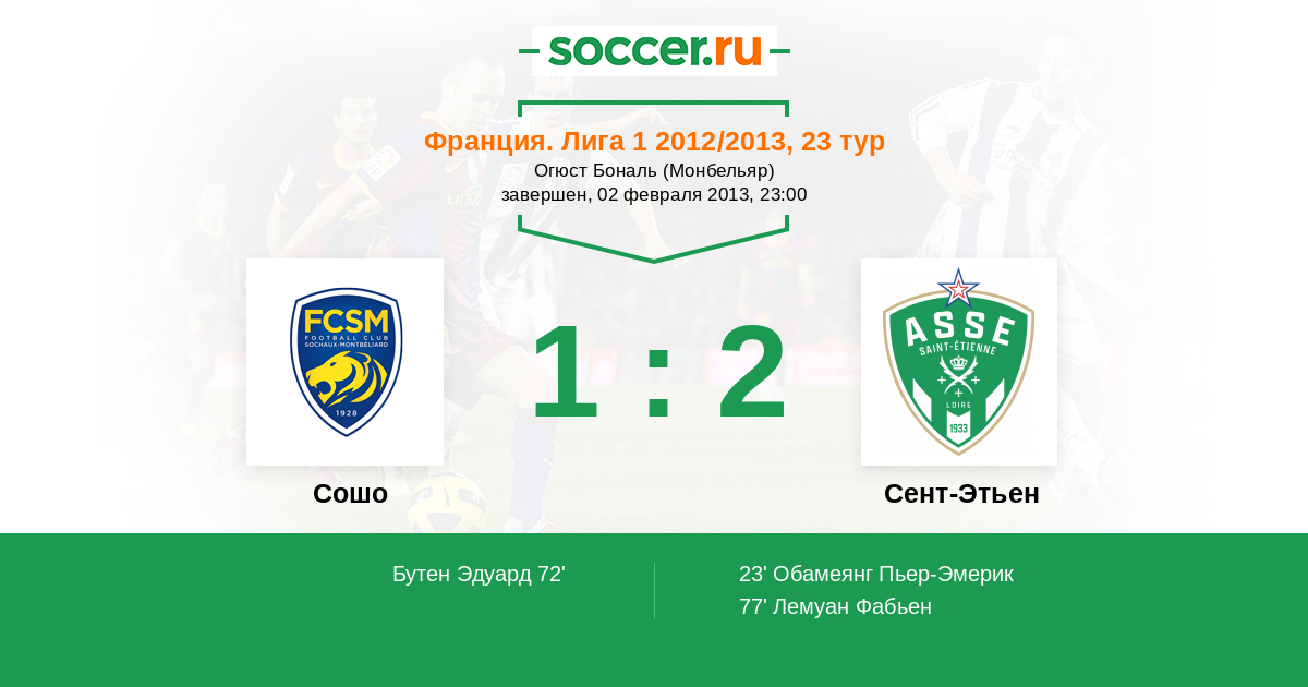Протокол матча Сошо против Сент-Этьен