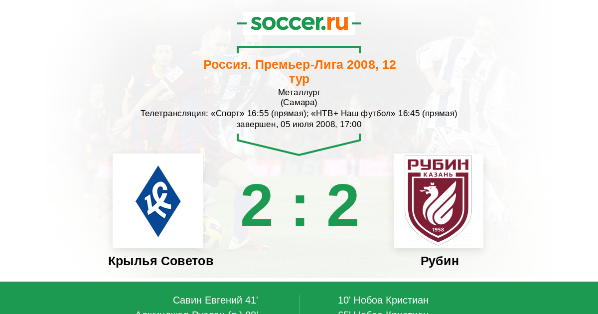 Протокол матча Крылья Советов против Рубин