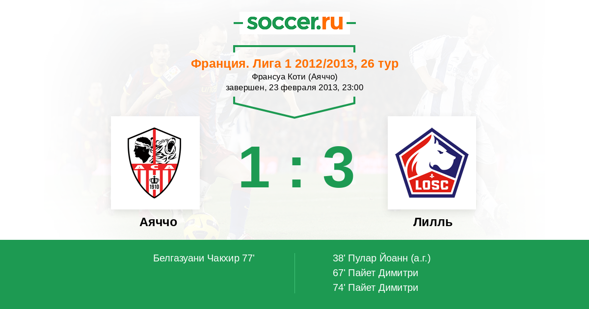 Протокол матча Аяччо против Лилль