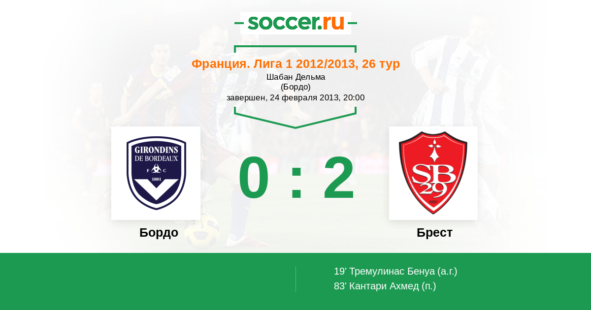 19' (0:1) Автогол Тремулинас Бенуа (28)