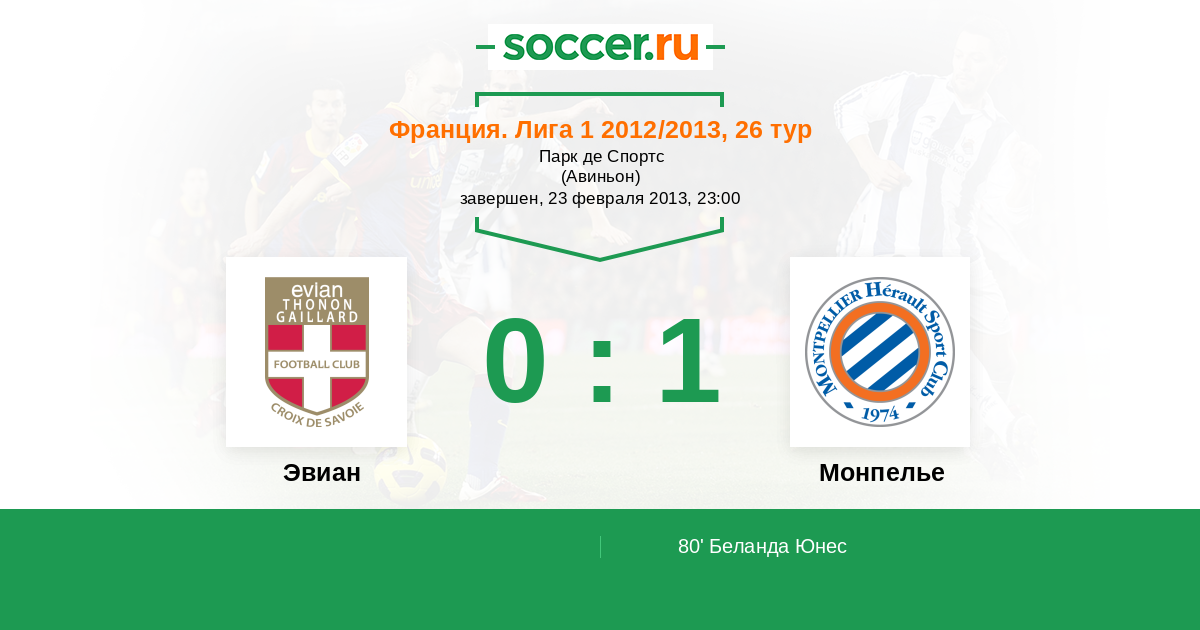 Протокол матча Эвиан против Монпелье