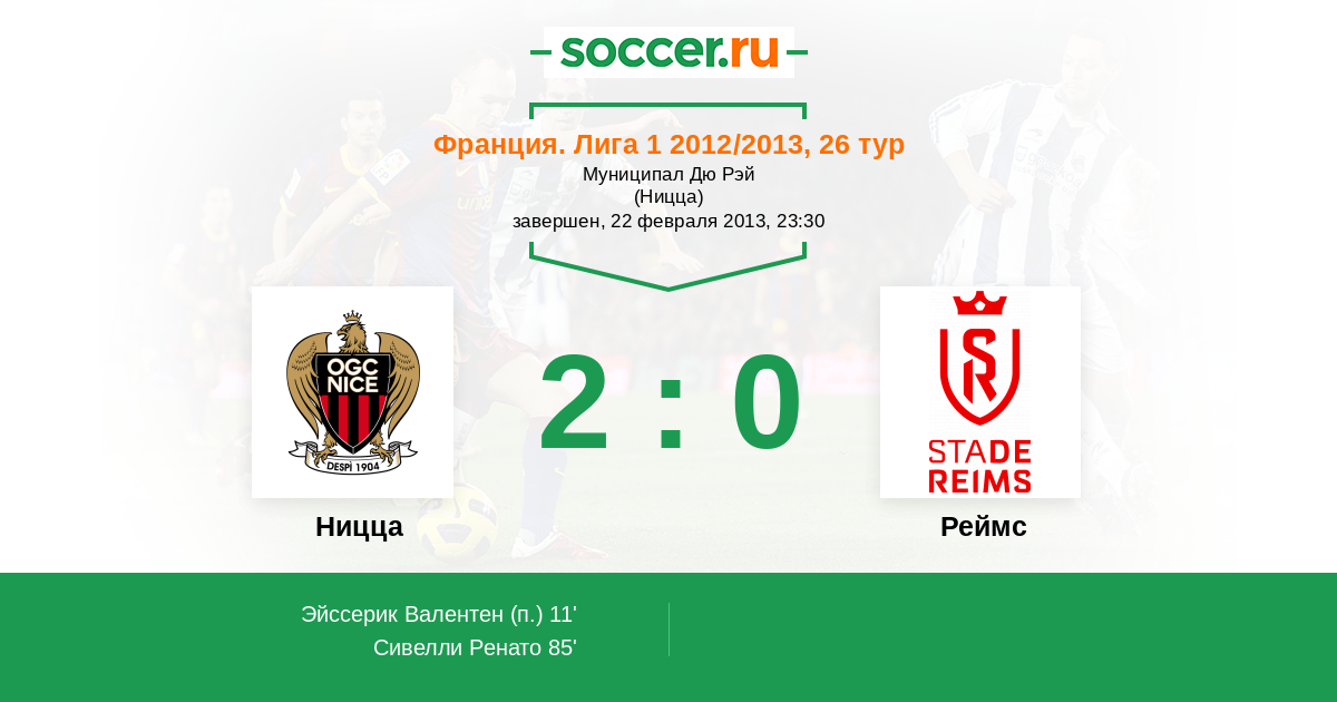 Протокол матча Ницца против Реймс