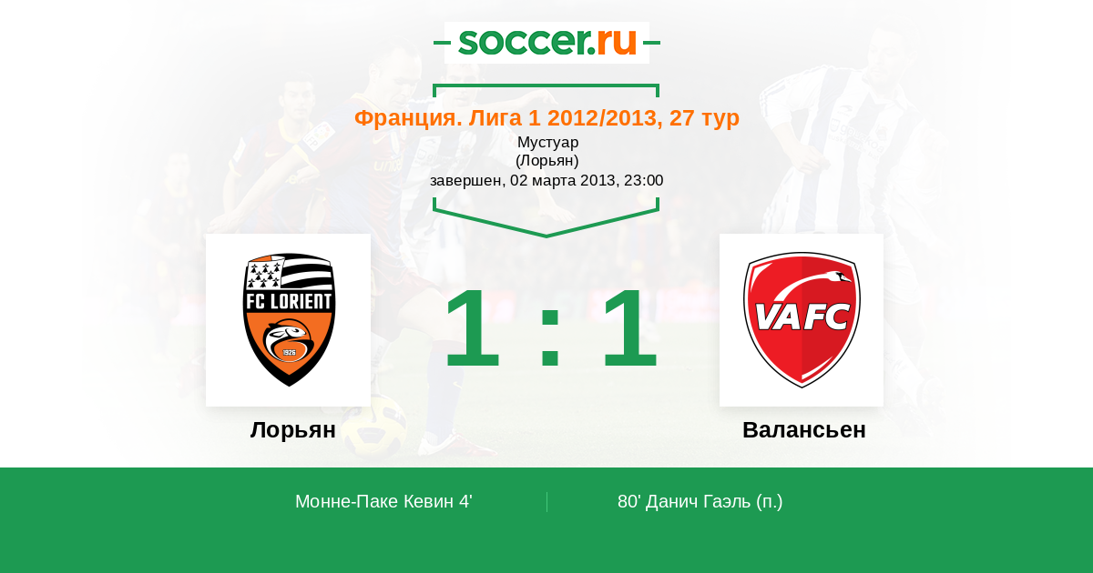 Протокол матча Лорьян против Валансьен
