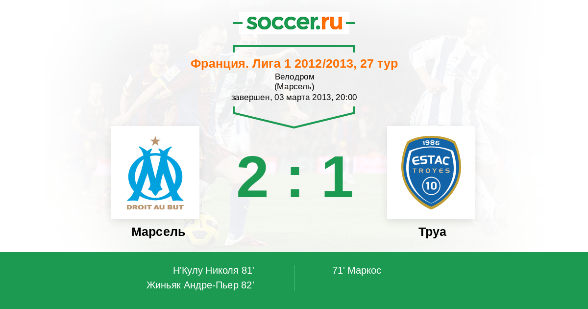 Протокол матча Марсель против Труа