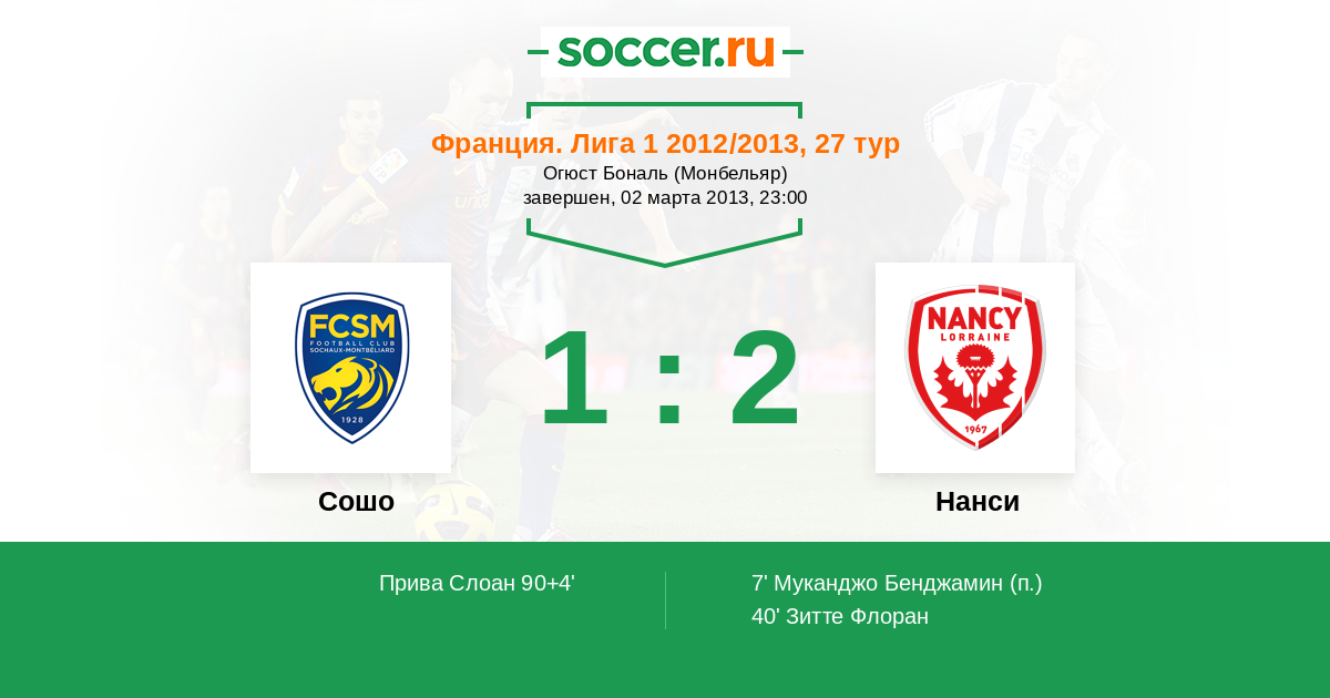 Протокол матча Сошо против Нанси