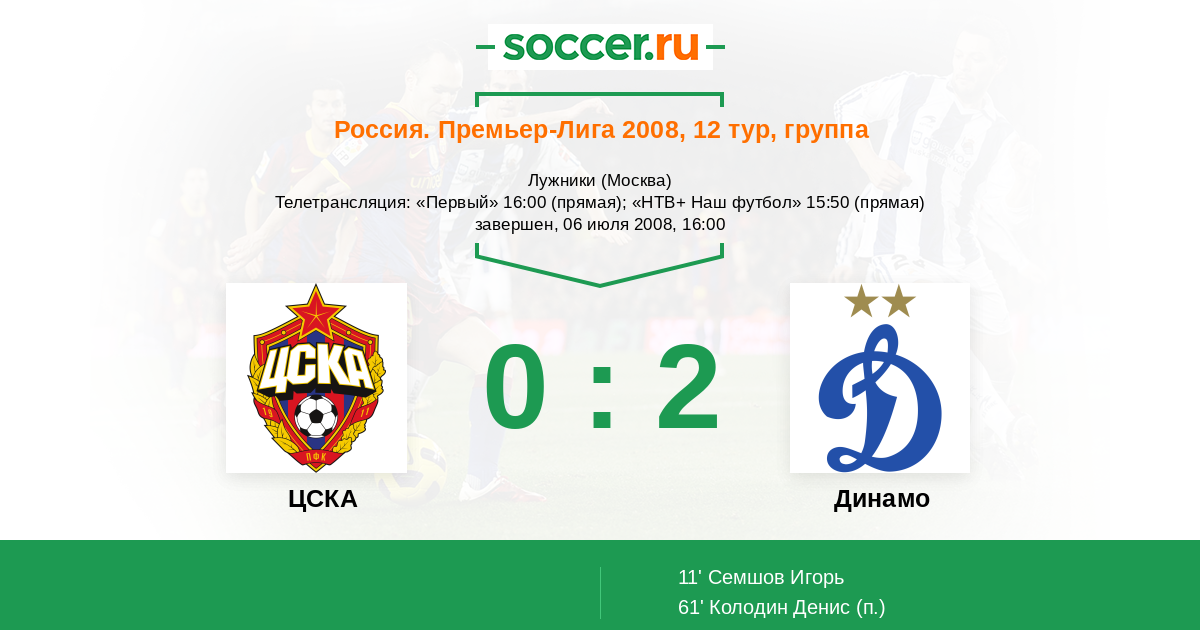Протокол матча ЦСКА против Динамо