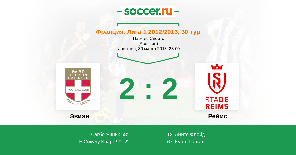 Протокол матча Эвиан против Реймс