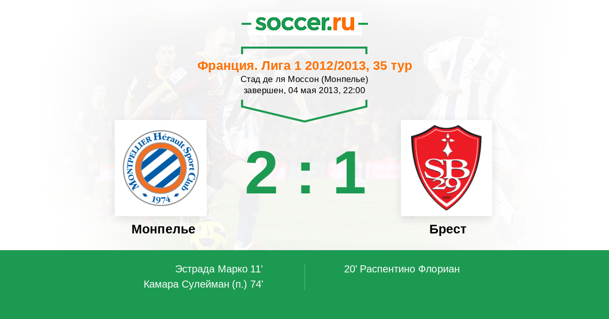 Протокол матча Монпелье против Брест