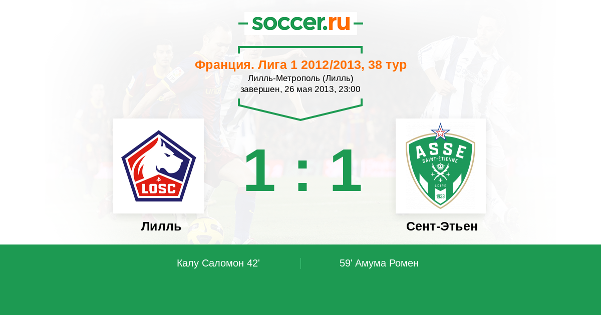 Протокол матча Лилль против Сент-Этьен