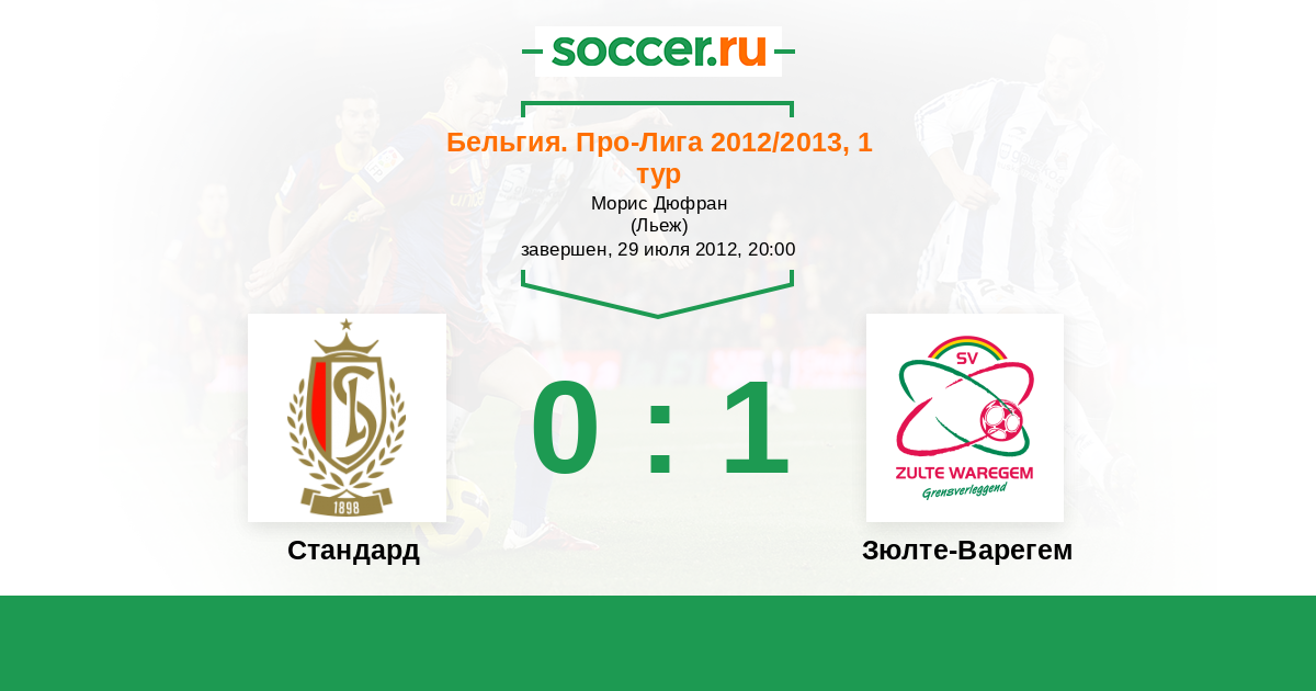 Бельгия. Про-Лига 18.11.2012 Зюлте-Варегем Логотип футбольный клуб Зюлте-Варегем 0:0 Логотип футбольный клуб Стандард (Льеж) Стандард