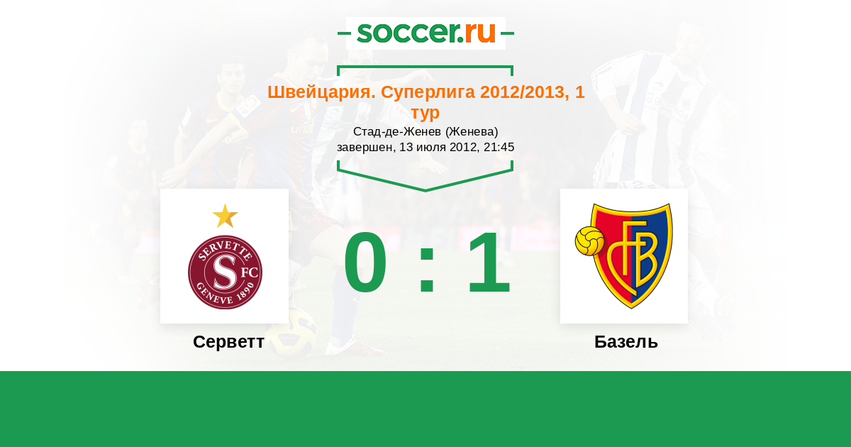 Швейцария. Суперлига 03.03.2013 Серветт Логотип футбольный клуб Серветт (Женева) 1:2 Логотип футбольный клуб Базель Базель