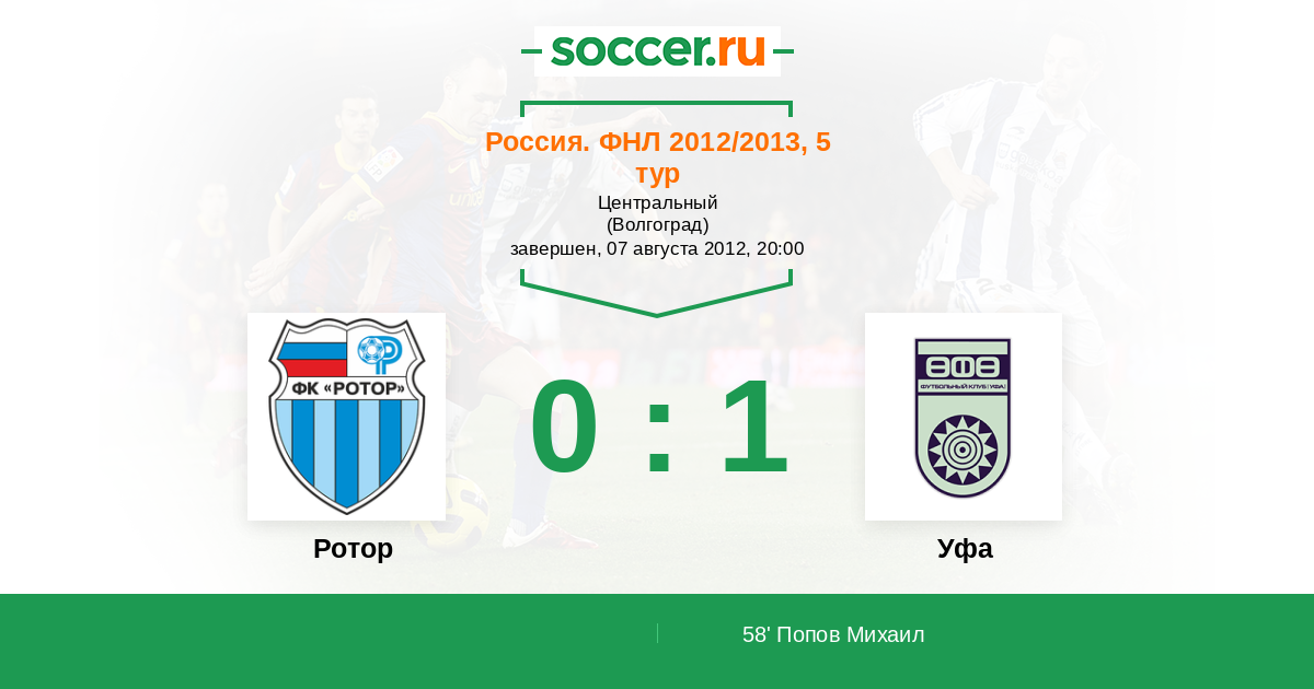 Протокол матча Ротор против Уфа