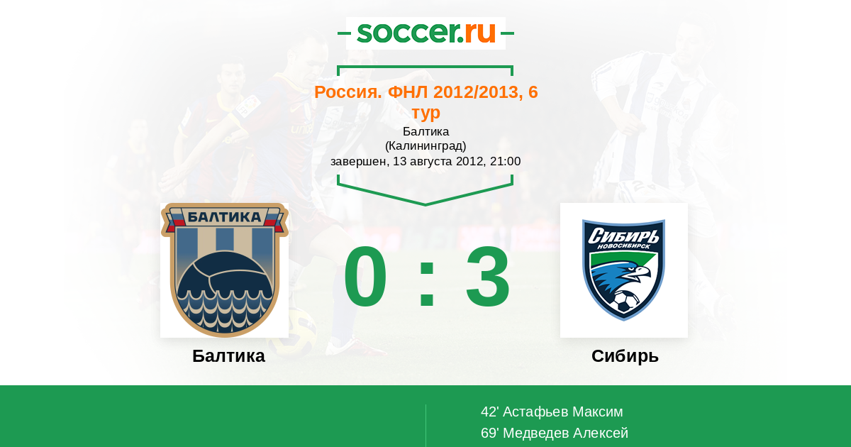 Протокол матча Балтика против Сибирь
