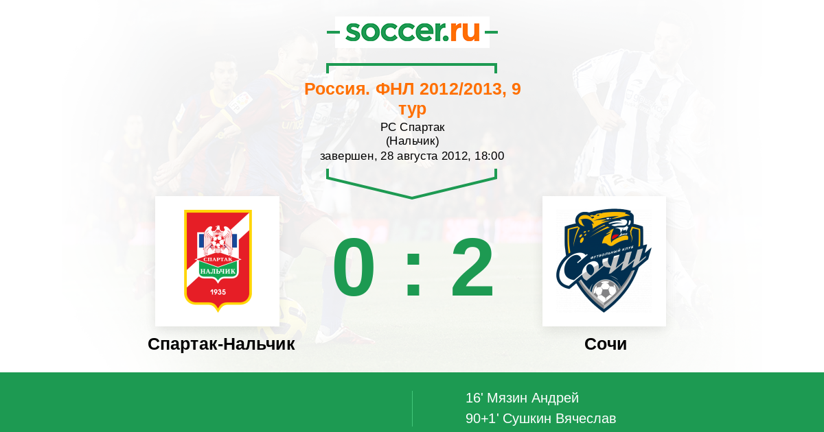 Протокол матча Спартак-Нальчик против Петротрест
