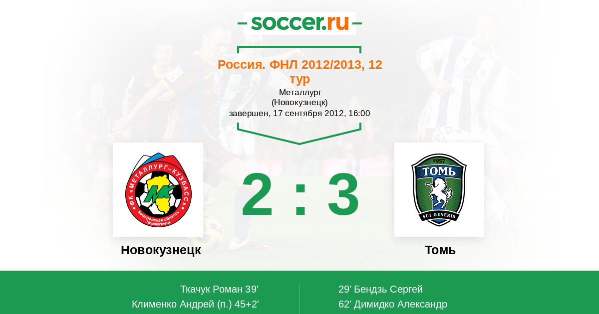 Протокол матча Металлург-Кузбасс против Томь