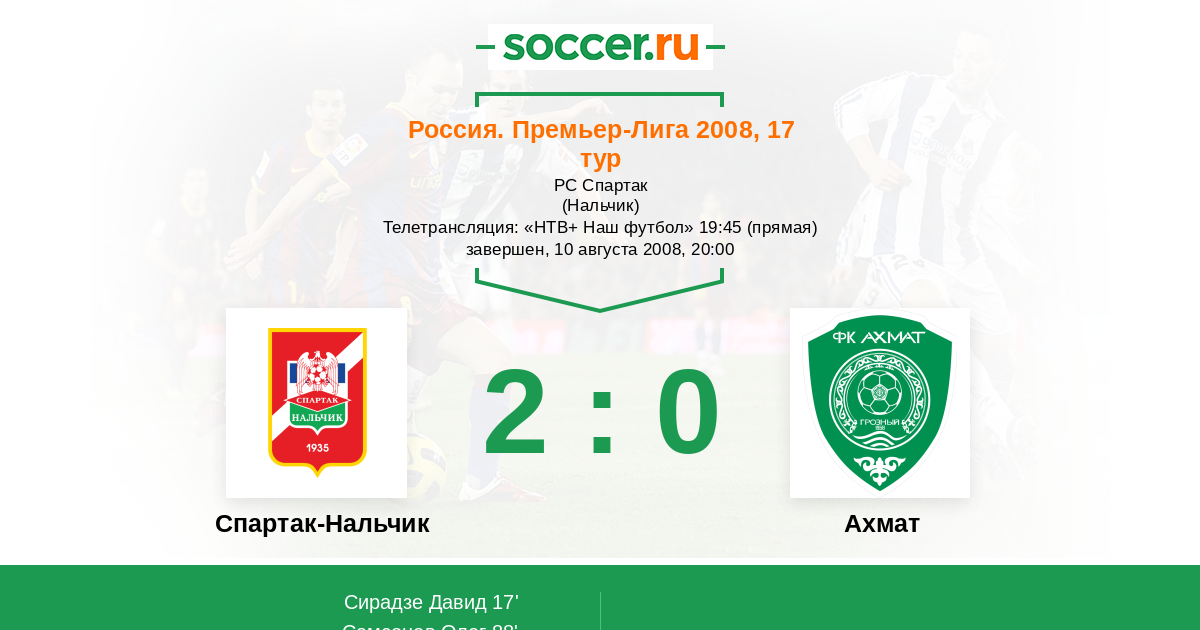 Протокол матча Спартак-Нальчик против Терек