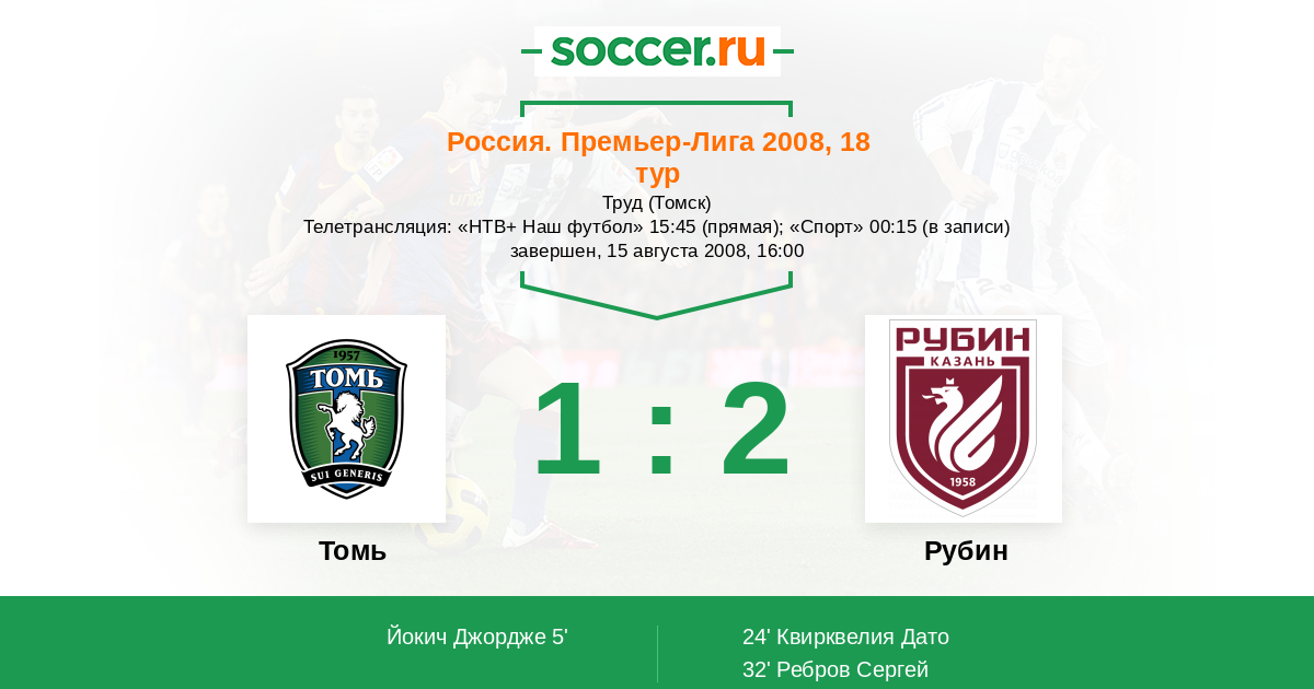 Телетрансляция: «НТВ+ Наш футбол» 15:45 (прямая); «Спорт» 00:15 (в записи)