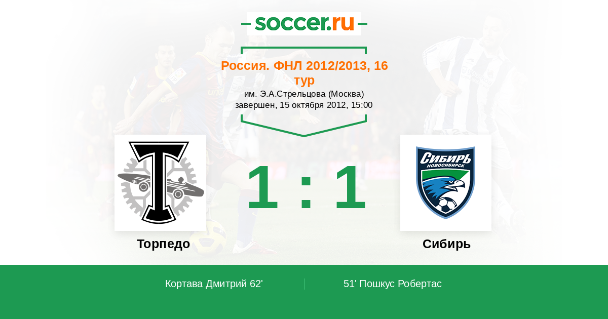 Протокол матча Торпедо против Сибирь