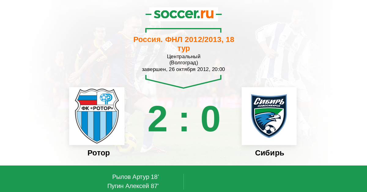 Протокол матча Ротор против Сибирь