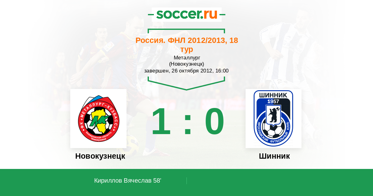 Протокол матча Металлург-Кузбасс против Шинник