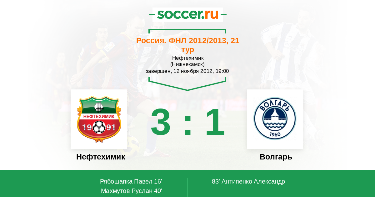 Протокол матча Нефтехимик против Волгарь